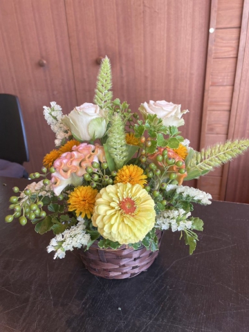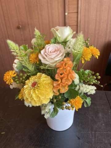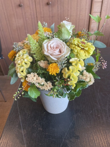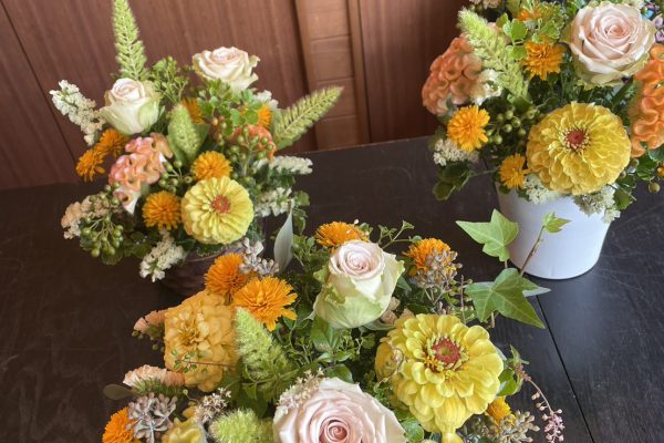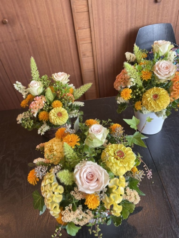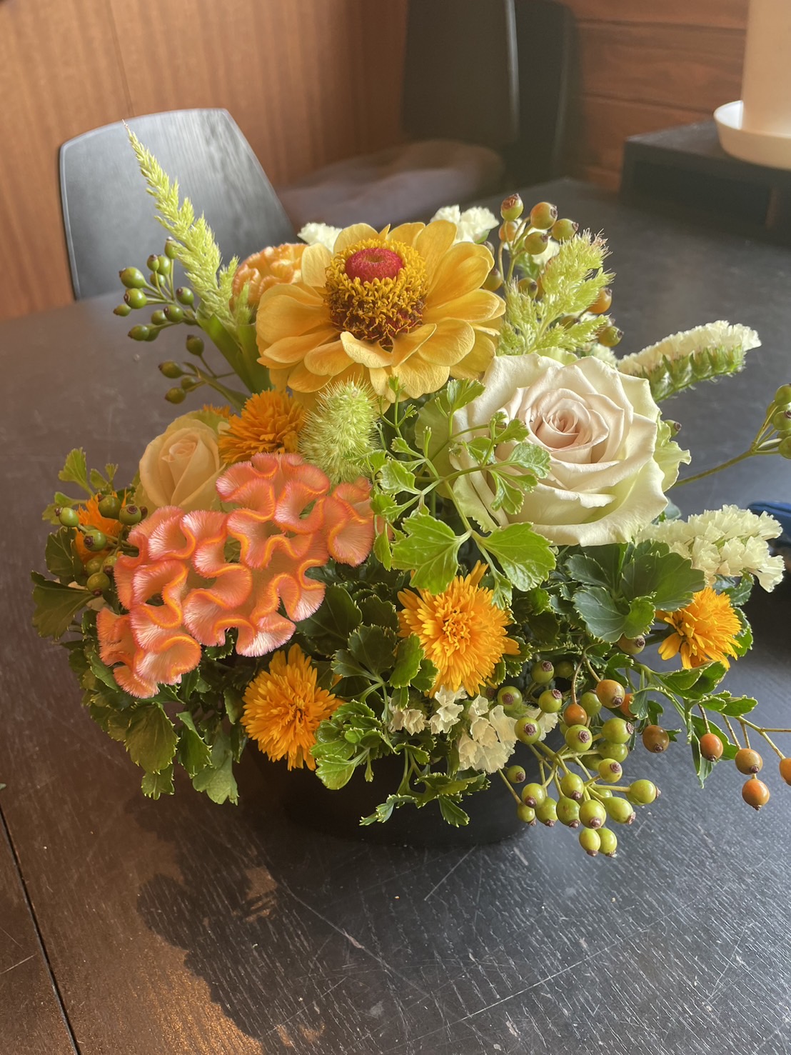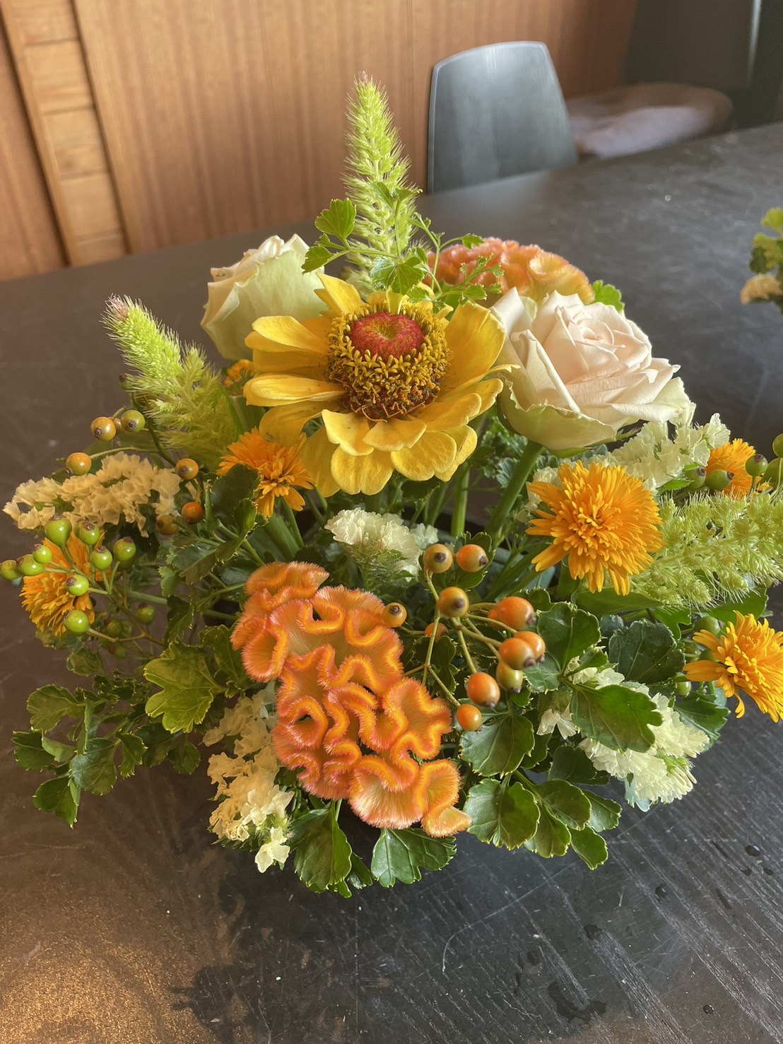 花材 ・バラ ・アワ ・スターチス ・ケイトウ ・ノバラ ・ヒメヒマワリ ・ポリシャス